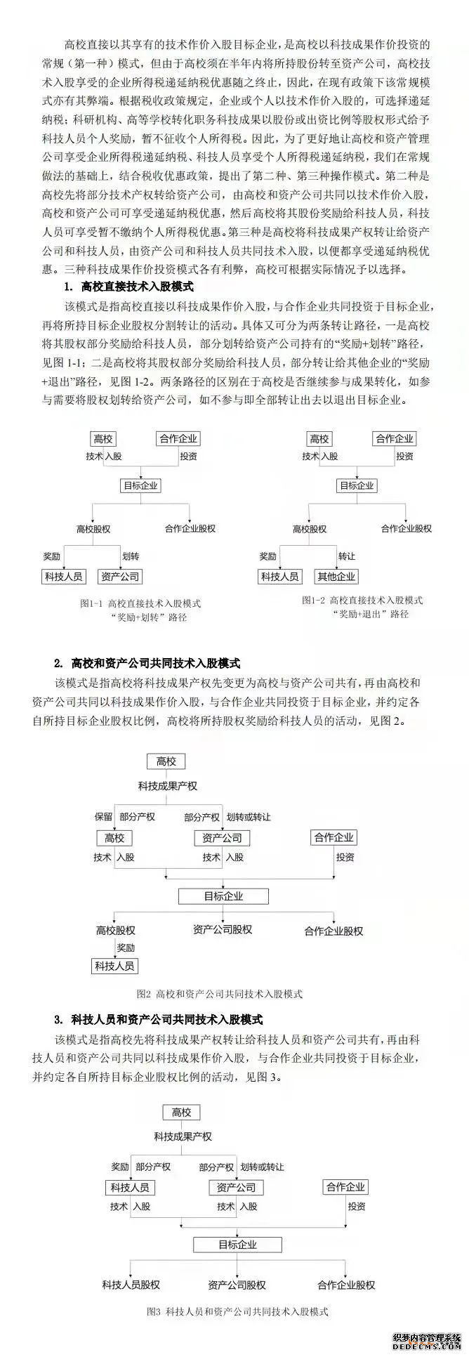 科技成果作价投资作为一种主要的成果转化方式,可以将科技成果完成单位丰富的科技资源优势、科技成果完成人的研发优势和企业家对市场需求敏锐的优势,通过共同入股紧密地结合在一起,形成利益共享、风险共担的经济共同体,最大限度优化资源配置,提高科技成果转化成功率。在天津市科技局、天津市税务局、天津市教委的指导下,天津大学法学院、天津市科学技术发展战略研究院联合,编制了《天津高校科技成果作价投资操作指引(V2.0 2022)》,明确科技成果作价投资的概念、流程和相关问题,为高校科技成果作价投资提供参考。今天秋凡科转为大家节选了指引关于高校科技成果作价投资3种模式的介绍。