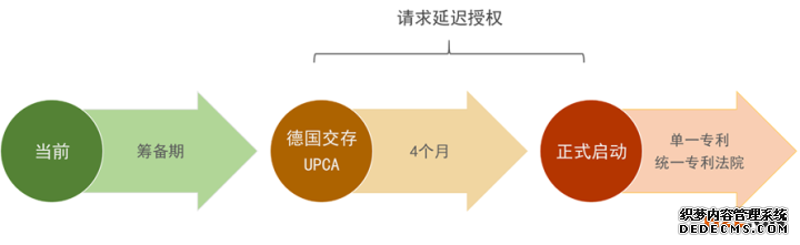 根据该过渡措施,自德国交存UPCA批准书之日起,申请人即可以向EPO提出请求延迟授权。需要注意的是,只有收到授权通知但还没有被授予专利权的欧洲专利申请,可以提出延迟授权请求;并且,延迟授权的请求只能在单一专利制度的开始实施之前提交。
