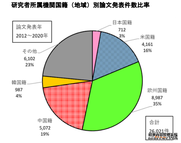 论文发表数量近年来呈增长趋势,从研究人员所属机构发表的论文占比来看,欧洲位居首位(35%),日韩的占比较少。
