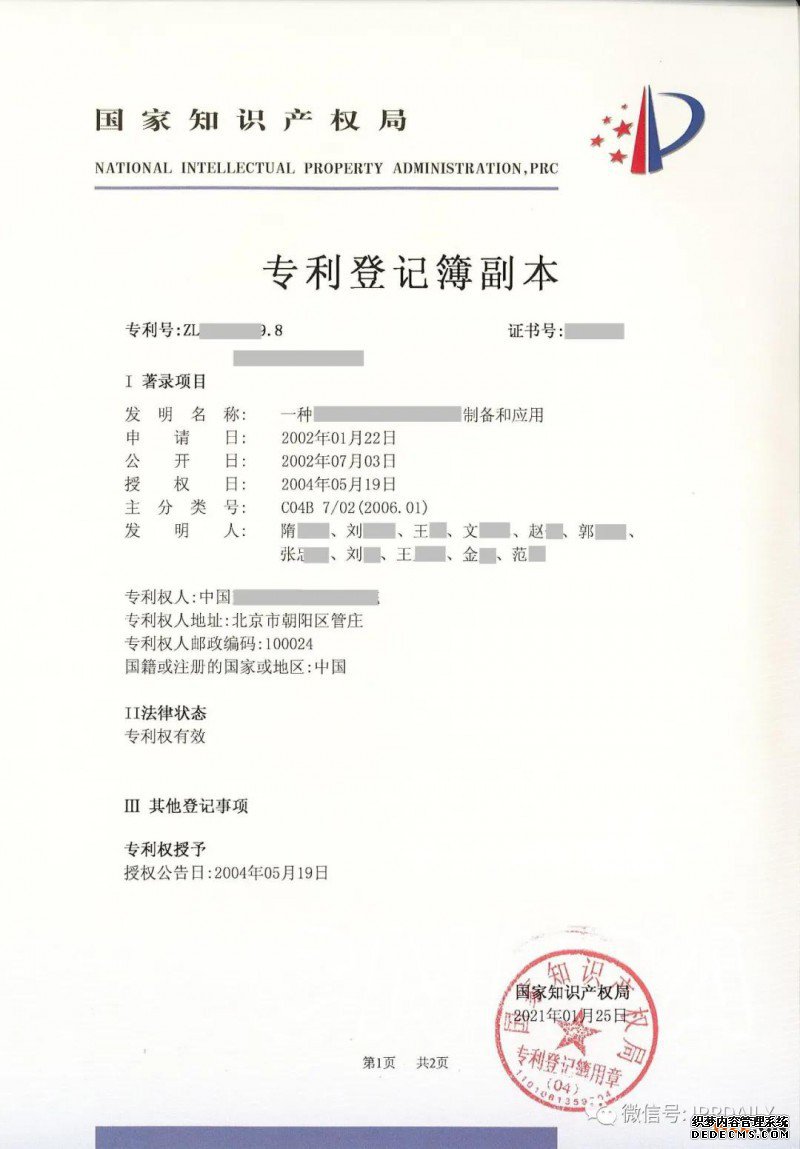 另外,已经下发专利证书后办理发明人更正/变更的,专利证书不会再次下发,仅以国家知识产权局发出的《手续合格通知书》为准,该通知书会指出变更登记的时间和期刊号。目前《专利登记簿副本》中会记载发明人信息,可根据需求向国知局请求专利登记薄副本,官费30元/份,办理周期约2-4周。