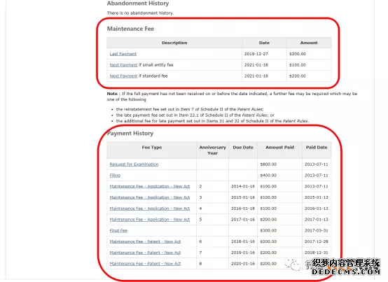 (5)在此页面,可查询到该专利的基本信息。点击此页面的“Admin Status”,可查询该专利其他信息和缴费信息。
