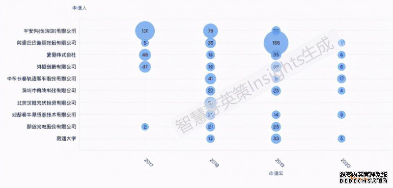 此外,由智慧芽英策Insights分析系统-新进入者图表分析得知,成都牵牛草信息技术有限公司、中车长春轨道客车股份有限公司等申请人均自2017年及以后开始向一带一路沿线国家递交专利申请。