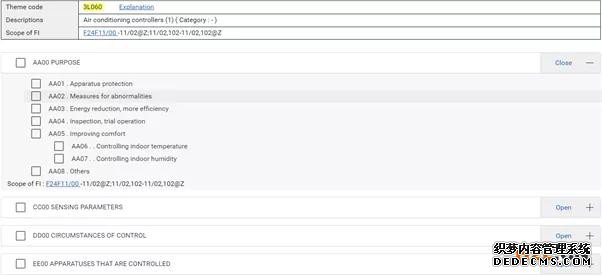 二维分类表3L060对这个构建出的技术领域(空调控制装置领域)进行了“细分”,而不是对每个具体的FI分类号的细分;多个FI分类号共用一张FT分类表,如下图所示,多个FI分类号共用FT分类表2B382。