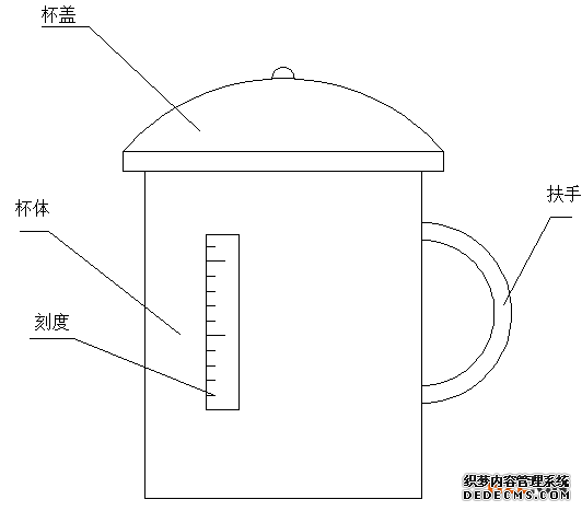 在A专利进行申请后,过了一段时间,发明人发现,人们对于喝水量有精准控制的需求,又在A专利的基础上,增加了刻度;如下图所示,